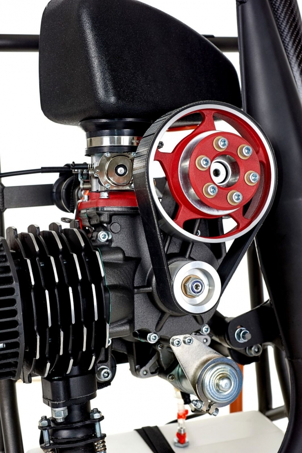Unser Rahmen Full Race aus Titan Grad 2 und Grad 9 (40 % leichter als rostfreier Stahl) hat unvergleichliche Eigenschaften. Er ist sowohl extrem leicht (2,5 kg) als auch robust und entspricht den Ansprüchen aller Piloten. Jeder auf dem Paramotor-Markt erhältliche Motor kann darauf montiert werden (Polini, Bidalot, Cisco, Corsair, H&E, Vittorazi usw...).